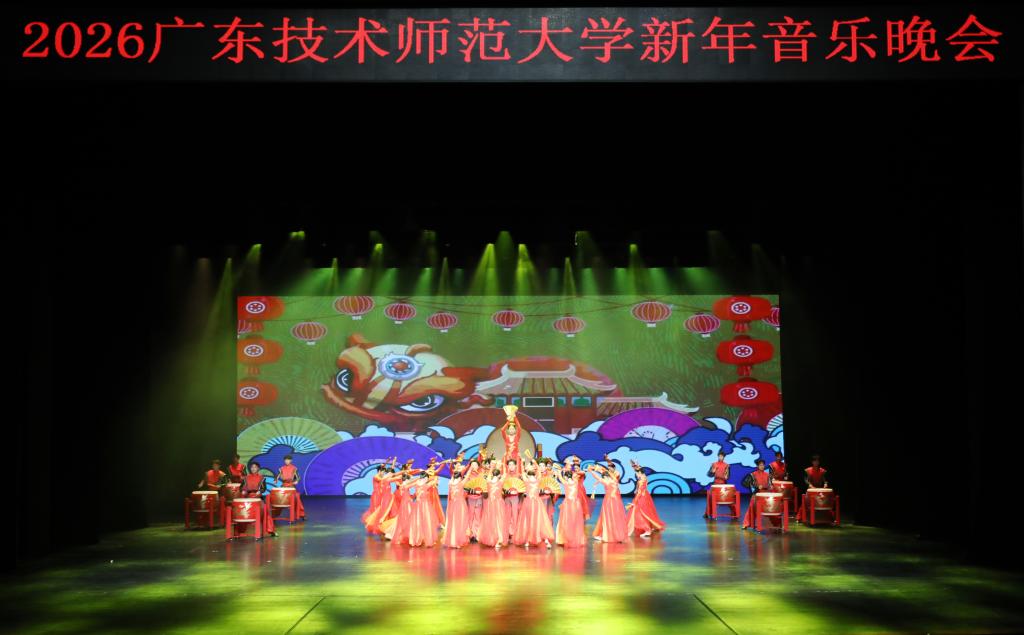 12月27日晚,广东技术师范大学2026年新年音乐晚会在河源市桃花水母大剧院举行。王兵、金义富等校领导,与省有关部门负责人、河源市领导、兄弟院校代表、社会各界嘉宾及师生代表约900人现场观看了演出。晚会同步开通线上直播,据不完全统计,线上观看人次近3万,各界人士线上线下欢聚,喜迎新年。