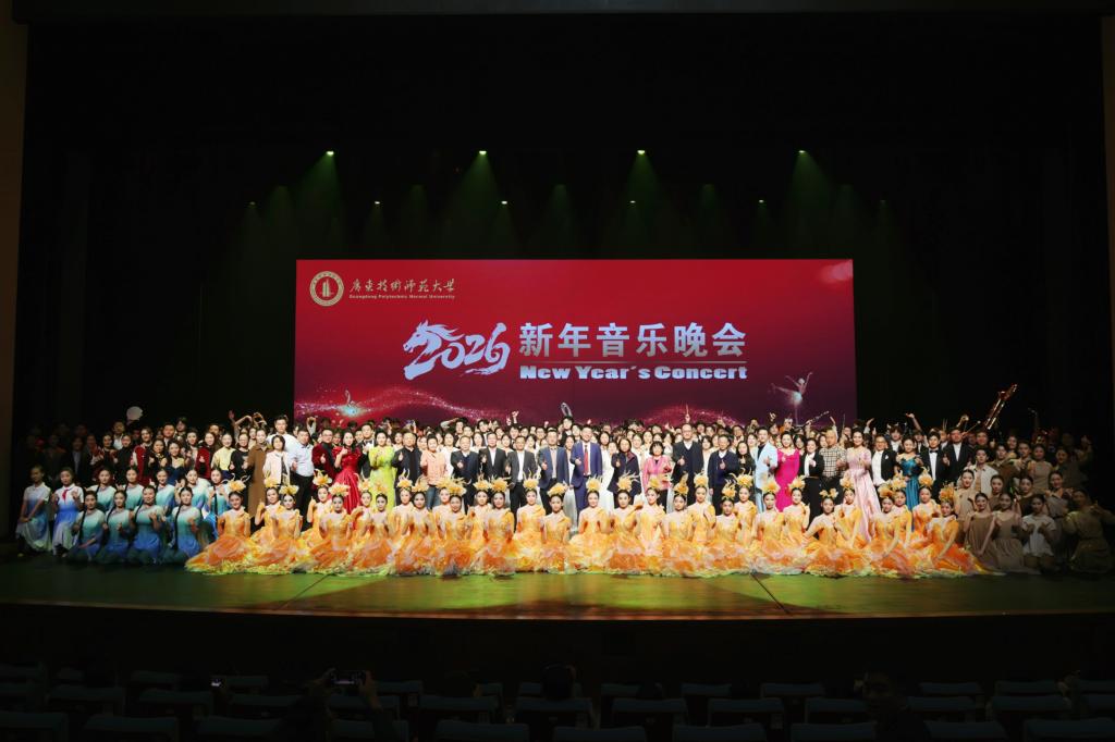本次新年音乐晚会主题鲜明、格调高雅、形式丰富,充分彰显学校艺术教育的扎实功底与创新活力,生动体现学校以文化人、以美育人的教育理念,主动服务区域发展、勇担高校社会责任的使命担当。在2026年新年即将到来之际,这场高水准的音乐盛宴,为现场观众送上美好艺术享受与新春祝福,更奏响了学校与河源人民携手同心、共赴高质量发展新征程的华美乐章。
