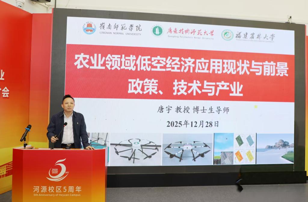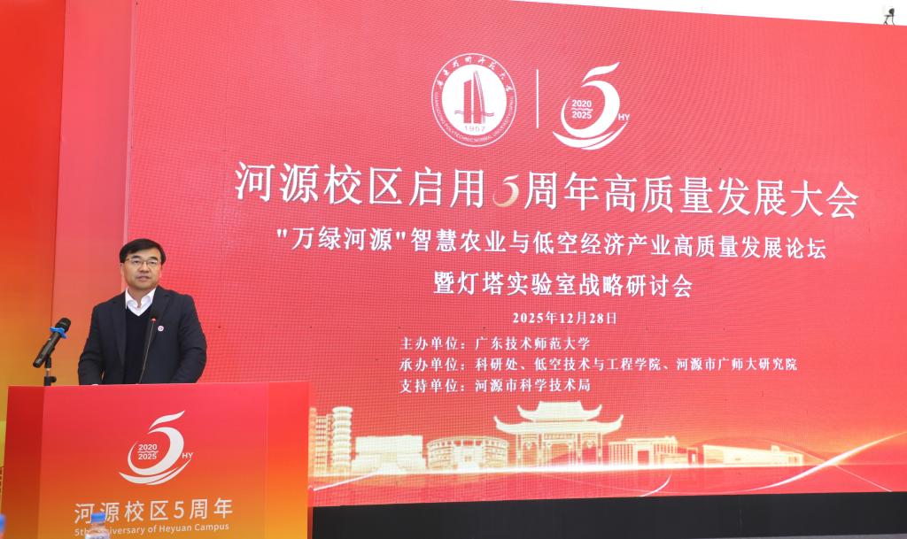 12月28日,“万绿河源”智慧农业与低空经济产业高质量发展论坛暨灯塔实验室战略研讨会在广东技术师范大学河源校区召开。作为我校河源校区启用5周年高质量发展大会的延伸活动,本次论坛由河源市科学技术局支持,论坛以“低空引领,智绘三农”为主题,汇聚政产学研用各方力量共商两大产业融合发展新路径,为河源绿色崛起与高质量发展注入动能。