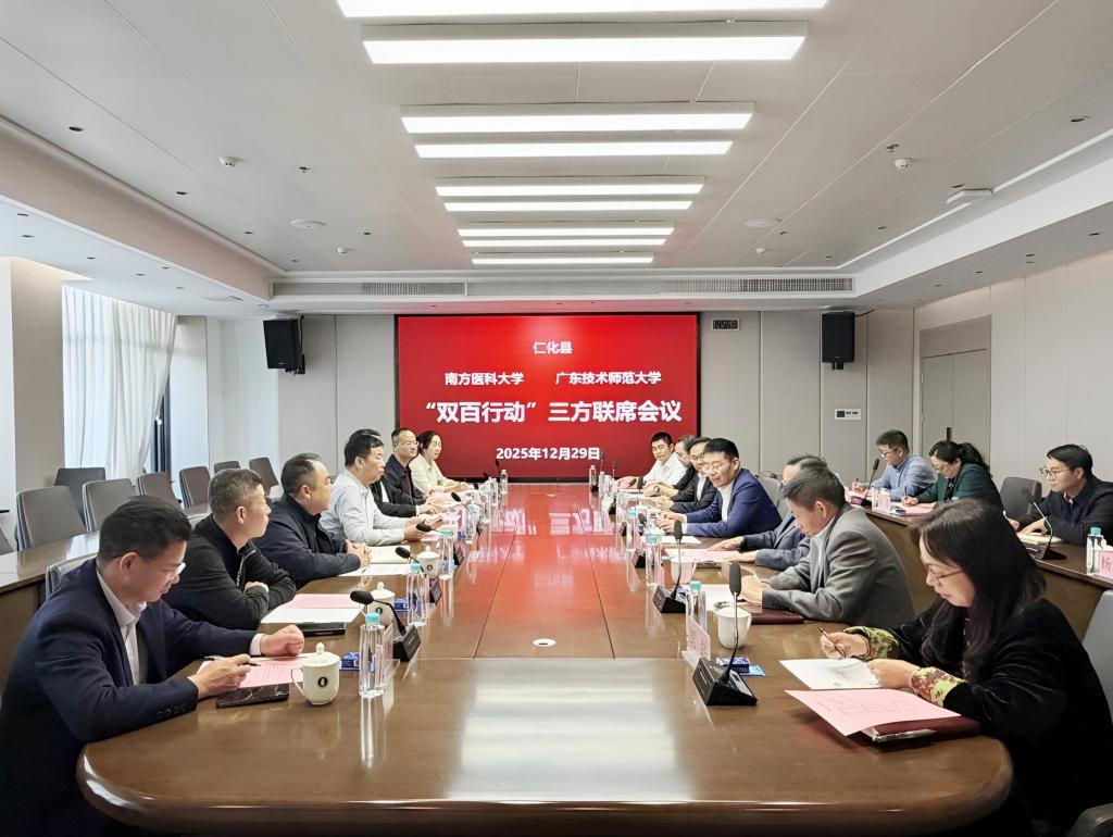 近日,为深入贯彻落实省委、省政府关于实施“百县千镇万村高质量发展工程”的部署要求,持续推进高校“双百行动”走深走实,仁化县一行赴我校,与南方医科大学共同召开“双百行动”三方联席会议。会议在我校东校区举行。