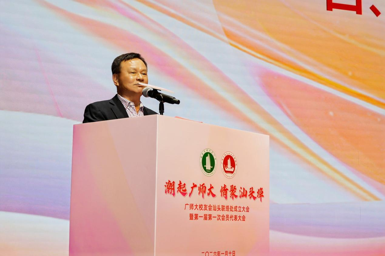 鼓点铿锵踏潮来,校友情深聚鮀城。2026年1月10日,广东技术师范大学校友会汕头校友联络处成立大会暨第一届理事会第一次会员代表大会在汕头白天鹅酒店隆重举行。学校党委书记王兵、副校长苏晖、原副校长林伦伦等领导和党办、校友办、机电学院、音乐学院相关部门负责人,与汕头各界校友代表欢聚一堂,共同见证重要时刻,倾心畅叙校缘情谊。
