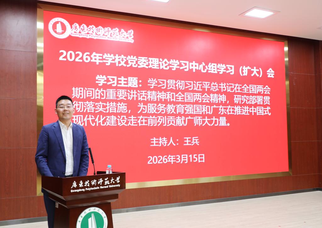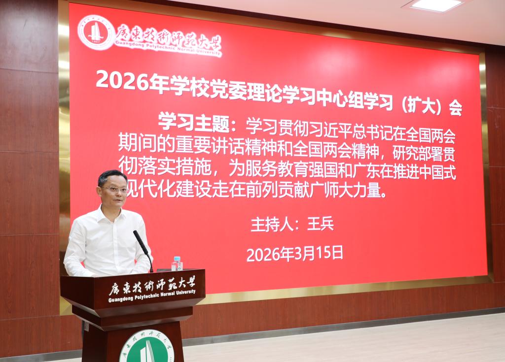为学习贯彻习近平总书记在全国两会期间的重要讲话精神和全国两会精神,3月15日,学校召开党委理论学习中心组第二期学习(扩大)会,研究部署贯彻落实措施,为服务教育强国和广东在推进中国式现代化建设中走在前列贡献广师大力量。党委书记王兵主持会议并讲话。全体校领导、全体中层干部参加会议。