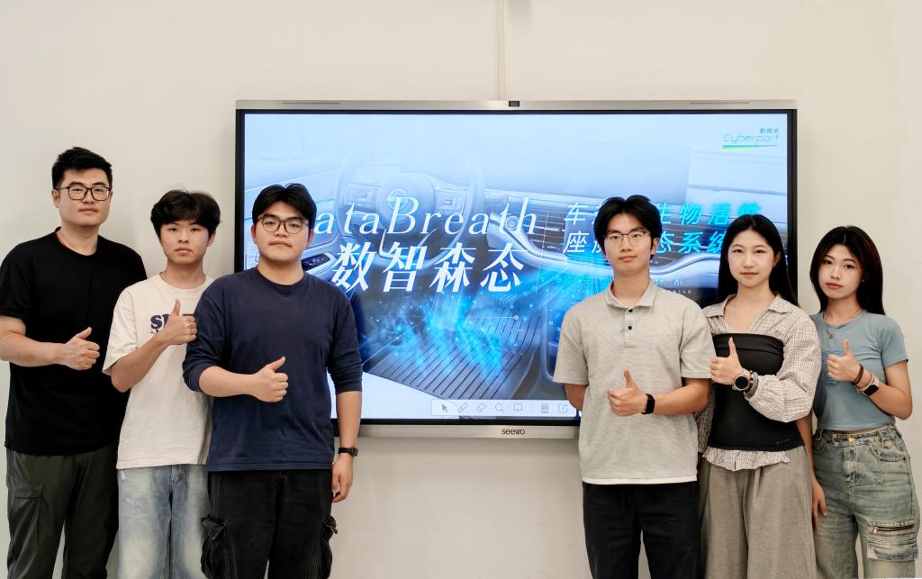 “数智森态DataBreath”团队来自汽车与交通工程学院,由学生许晓斌、吴煌、王琮荣、陈温昕、肖毓潾、蔡汝欣组成,屈慕超、陈晓桁、邝绮琳、杨馥莉、马东影老师担任指导。项目以自释放负氧离子汽车地毯为核心,打造智能车规级生物活性座舱生态系统,拥有5项发明专利。在学校的大力支持与创业孵化下,项目已与东风日产合作实现市场化落地,还获评河源市“百千万工程”专项推荐入库、国家级大创立项、中葡929创业挑战赛“最具潜力奖”等多项荣誉,成果丰硕。