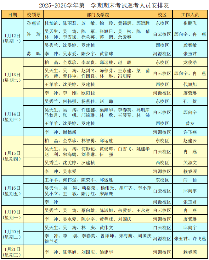 3.巡考集中地点:白云校区第三教学楼105教师休息室。