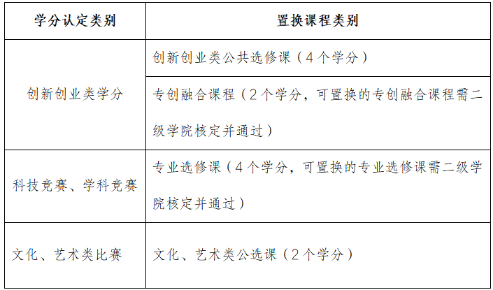 二、学分认定和置换课程类别