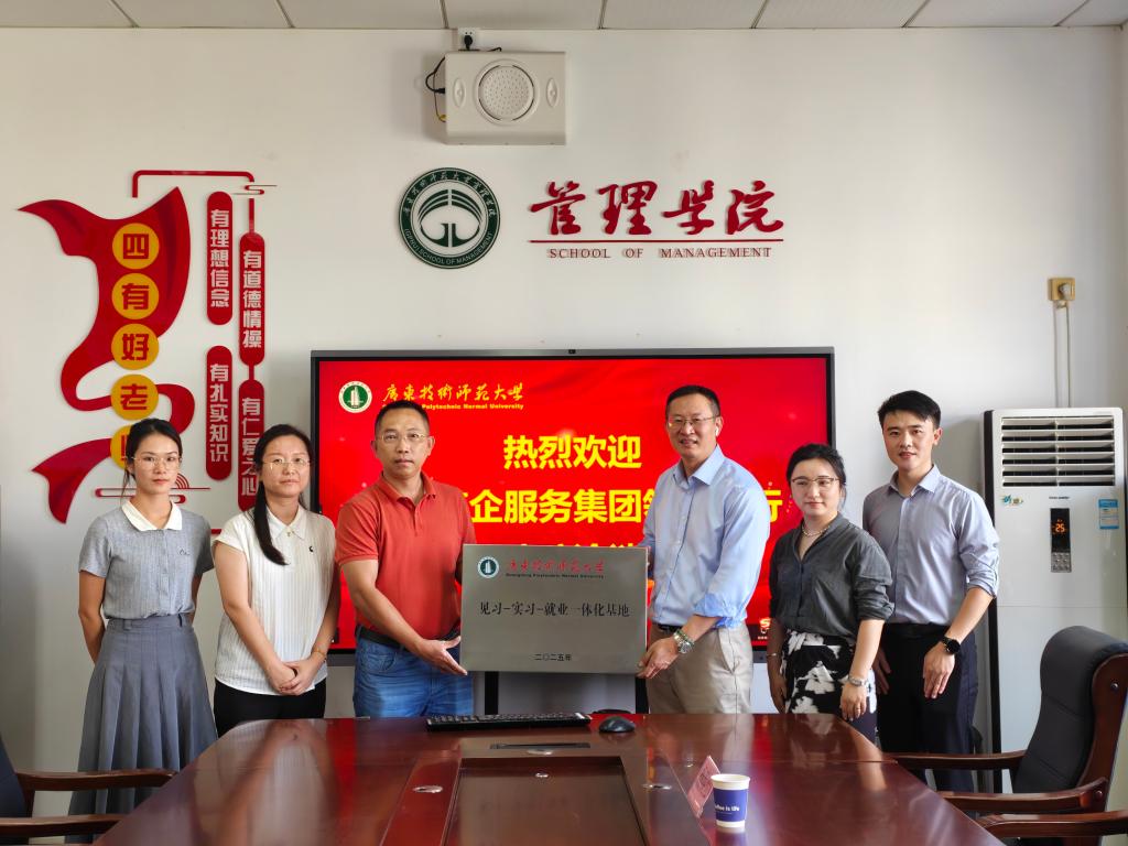 10月17日下午,管理学院于白云校区一教502会议室与卓越商企服务集团签订校企合作共建协议,并进行授牌仪式。管理学院院长赵剑冬、党委副书记王婷婷、卓越商企服务首席执行官杨志东、人力资本中心总经理姚晓波出席活动。