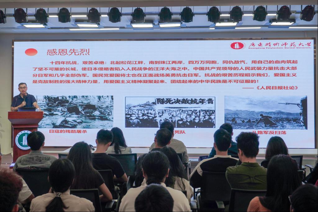 活动伊始,辅导员陈金辉老师以诗词为引,带领同学们体悟古人在重阳节时的思亲之情,以“明起源、知习俗、听故事、懂感恩”为脉络介绍了重阳节的历史渊源,并带领同学们回望抗战峥嵘岁月,真切理解抗战精神的深刻内涵,让传统美德与家国情怀在心中同频共振。
