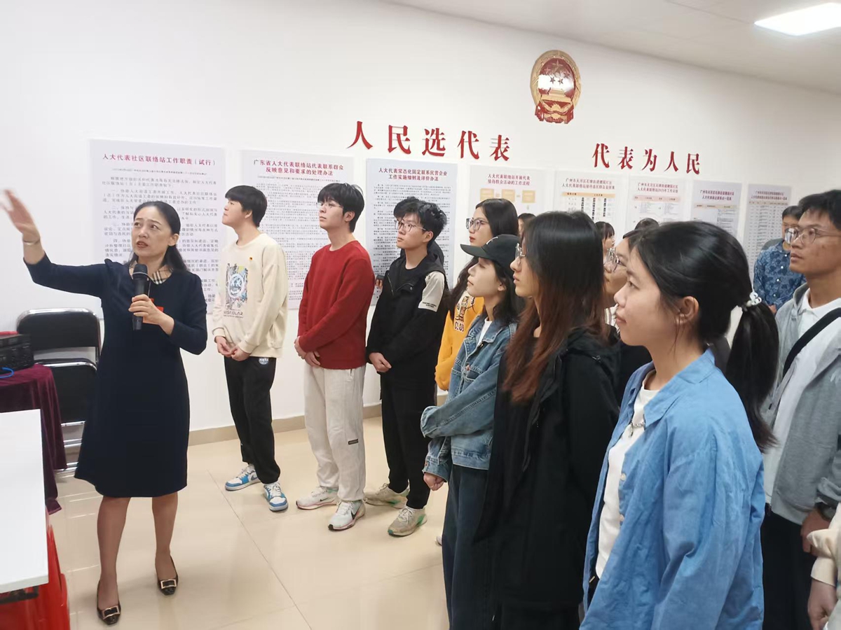 宣誓仪式结束后,穗园社区工作人员结合生动案例,围绕宪法核心要义、人大代表履职流程及基层民主制度等内容向同学们开展专题讲解。现场还设置了“模拟人大代表提案”互动环节,大家在实践中进一步深化了对我国根本政治制度的认知。