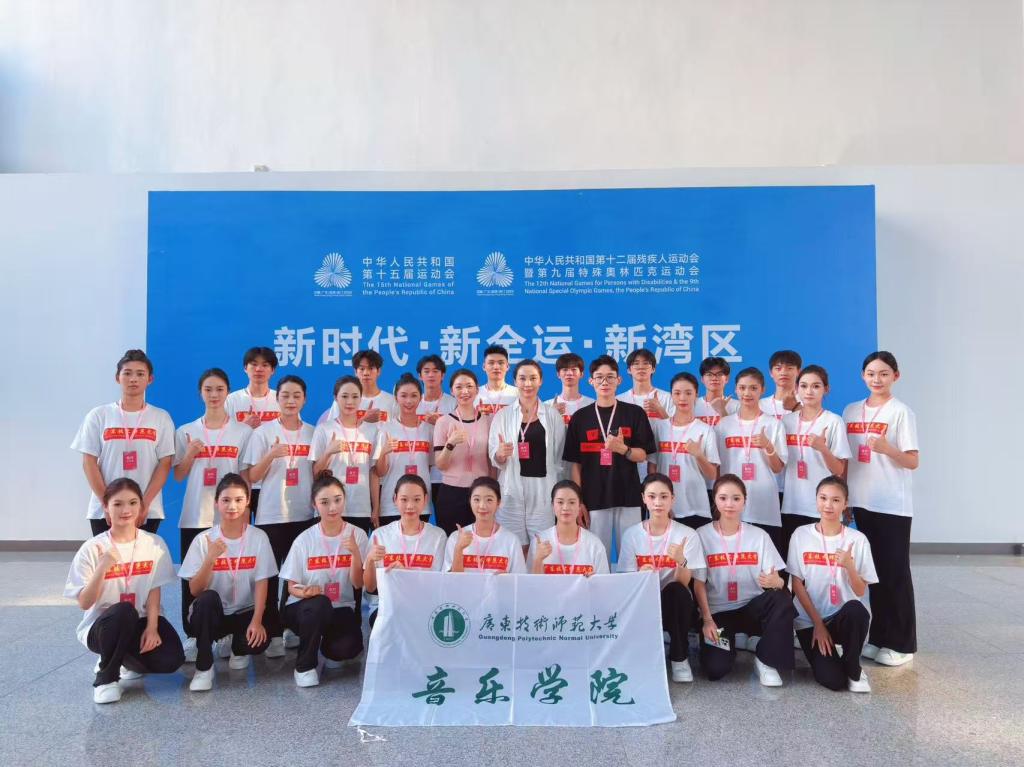 自2025年3月起,音乐学院党委便高度重视此项工作,成立专项工作组,统筹推进演员选拔、组织排练与后勤保障等事宜。学院累计选派10名教师及156名学生参与排演,承担了十五运会闭幕式引导员、标兵、篇章演出及残特奥会开幕式表演等多项核心任务,是广东省内参与本届盛会开闭幕式演出工作的重要高校之一。