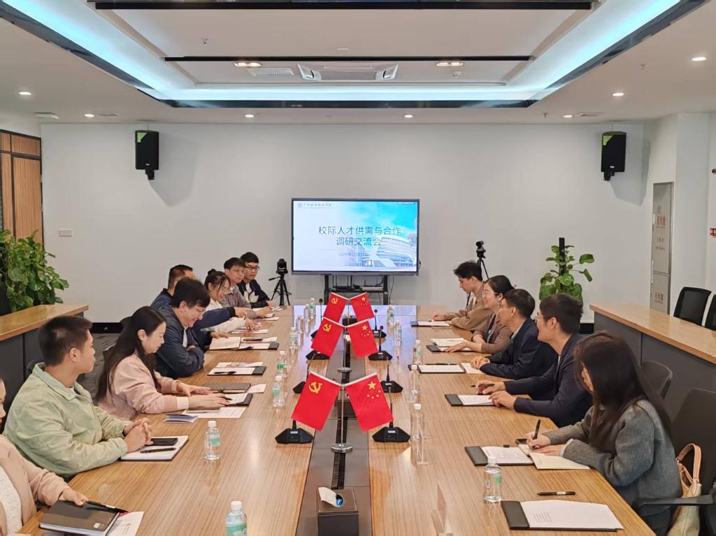 上午,学校一行抵达广州松田职业学院。该校校长吴教育、人事处处长罗彦其全面系统地介绍了广州松田职业学院的办学理念、学科布局及发展规划。双方围绕毕业生资源对接、就业信息共享、优质岗位推荐等议题深入研讨,达成强化人才供需协同、推进毕业生高质量就业的共识。