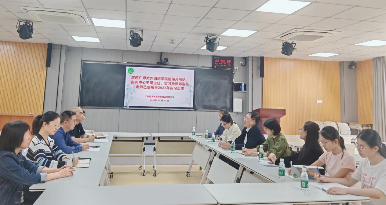 为扎实做好校外实习过程管理,深化高校与基础教育的协同育人机制,外国语学院党委书记杨伟光等一行人前往广东技术师范大学白云实验中学、江高镇中心小学开展教育实习中期检查工作。