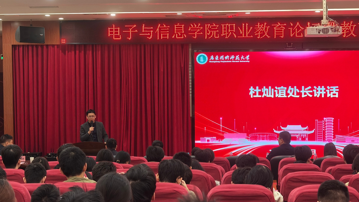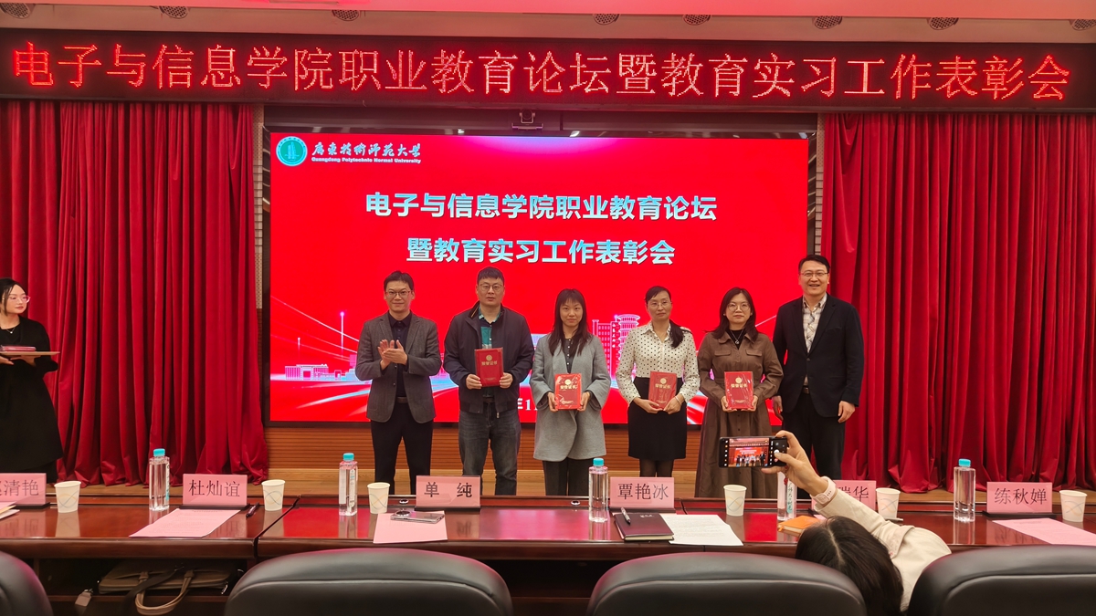 11月22日,电子与信息学院在白云校区三教104报告厅举办职业教育论坛暨实习工作表彰会。广东省机械技师学院、广州市增城区职业技术学校等多所省内职业院校的教师代表受邀出席,学校教务处处长杜灿谊、电子与信息学院院长单纯、副院长林沛、教师代表及全体师范生参加会议。