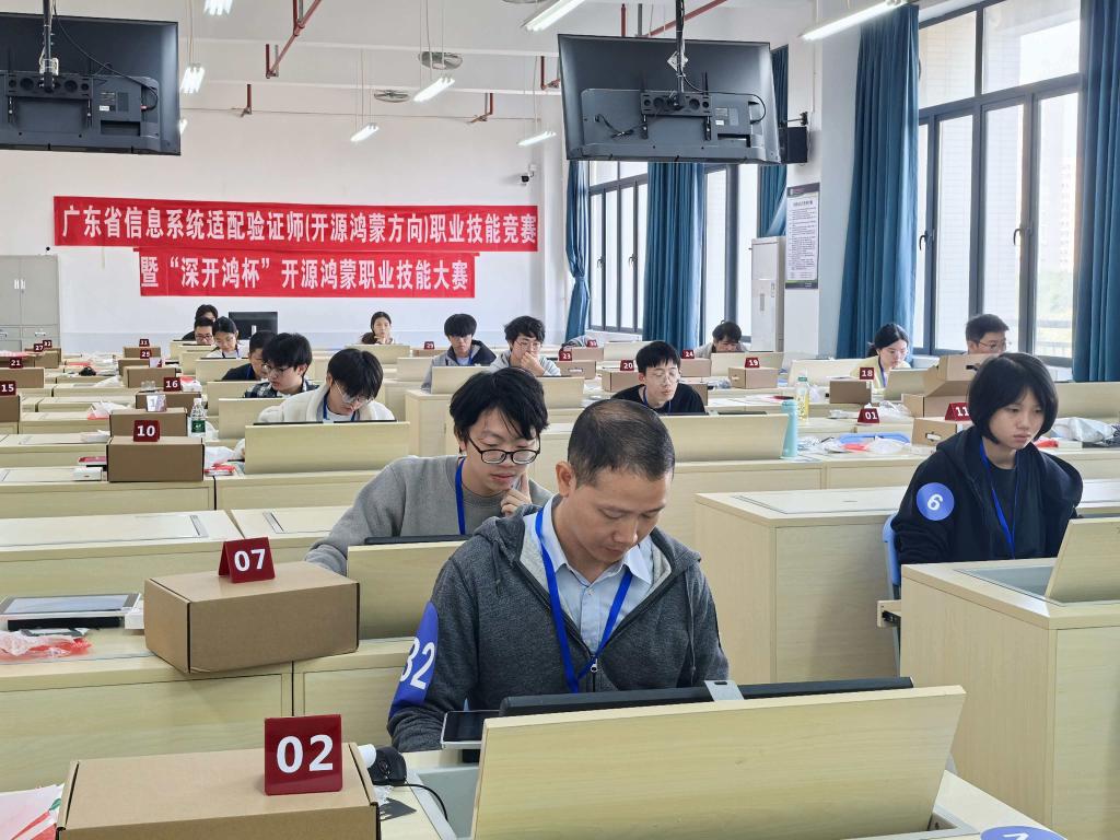 12月6日至7日,广东省信息系统适配验证师(开源鸿蒙方向)职业技能竞赛暨“深开鸿杯”开源鸿蒙职业技能大赛在我校白云校区举办。赛事由广东省人力资源和社会保障厅指导,广东省智能物联网操作系统产业协会主办,我校承办,深圳开鸿数字产业有限公司提供技术支持、粤港澳大湾区国家技术创新中心等多家单位协办,吸引全省28家高校、企业的64名学子与技术骨干同台竞技。