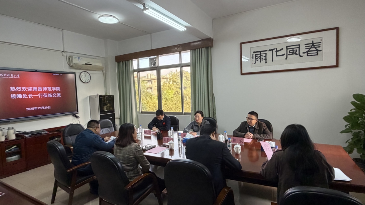 12月29日,南昌师范学院人事处处长杨晞一行3人来我校开展调研交流,双方围绕应用型师资培养、产教融合两大核心议题进行了深入探讨。学校党委常委、教师工作部部长、人事处处长许竹君及相关人员参加调研座谈。