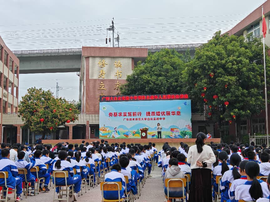 此次宣讲是付文佚副教授作为广师大白云实验中学法治副校长参与的第二场“法治教育进校园”活动,既有效提升了学生们对校园霸凌和诈骗的防范意识,也积极响应了白云区教育局关于加强寒假期间安全教育与管理的工作部署。 实验中学校长罗永新校长对法治宣讲的意义予以充分肯定。