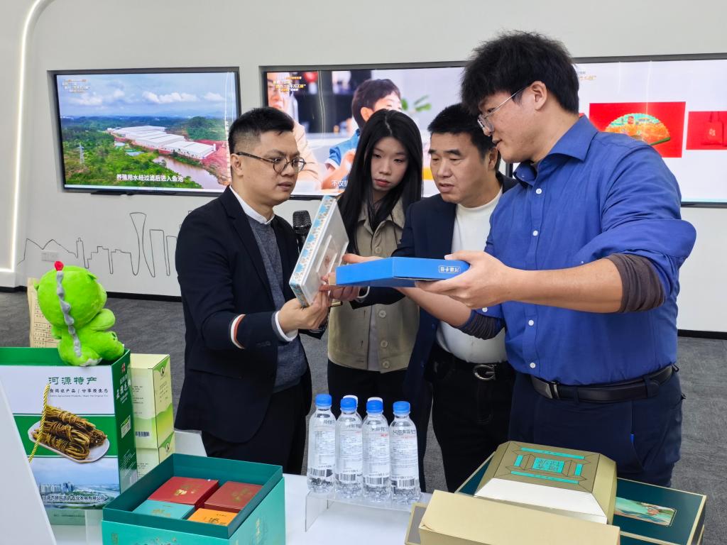 座谈会后,公司一行参观河源市农村科技特派员之家,了解我校开展科技创新与成果转化、人才培养与服务地方产业等领域有关情况。期间数字创意学院产业副教授姚德惠就“河你有源”和“万绿河源”品牌理念与产品包装设计向公司一行作介绍说明。