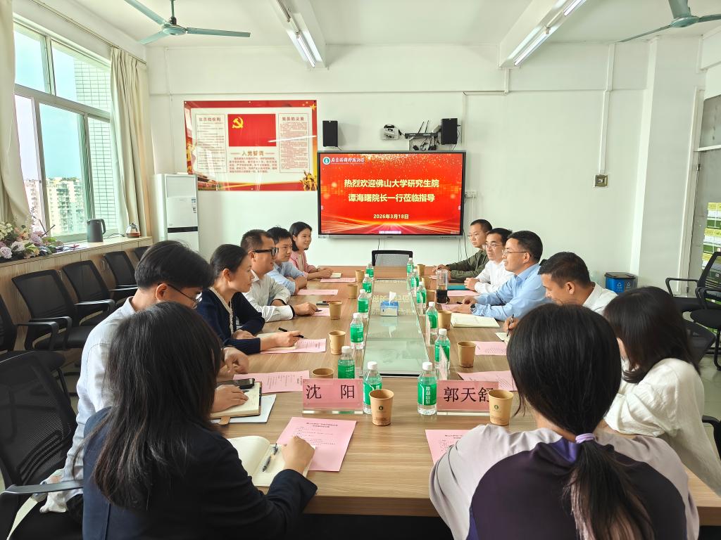陈泳竹对佛山大学研究生院院长谭海曙一行的到访表示热烈欢迎,同时围绕组织架构、专业布局、培养成效等方面介绍我校研究生院的基本情况及近年来的发展举措。谭海曙介绍了佛山大学的办学历史与研究生教育发展现状,表示希望以此次调研为契机,学习借鉴我校在研究生教育管理方面的经验做法,特别是在公费定向培养粤东西北地区中小学教师计划方面的人才培养的具体做法和成熟模式。
