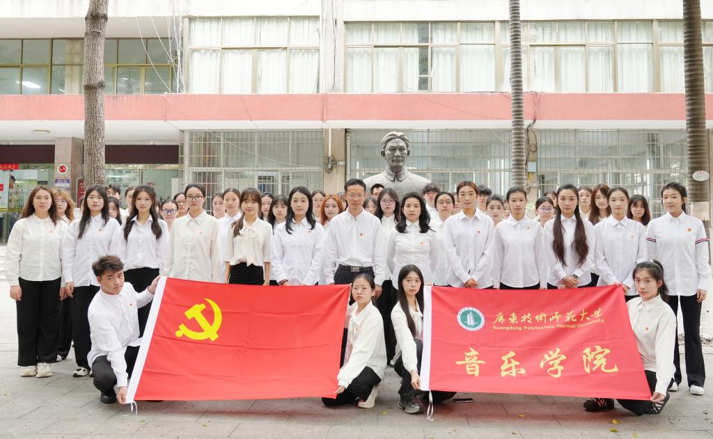 清明节前夕,音乐学院组织师生党员分赴学校罗明塑像、广州起义烈士陵园、河源市烈士陵园,开展“清明追思砺初心,红色薪火永相传”主题党日活动,将爱国主义教育、红色研学与专业实践深度融合,引导师生党员在追思中锤炼党性、传承红色基因。