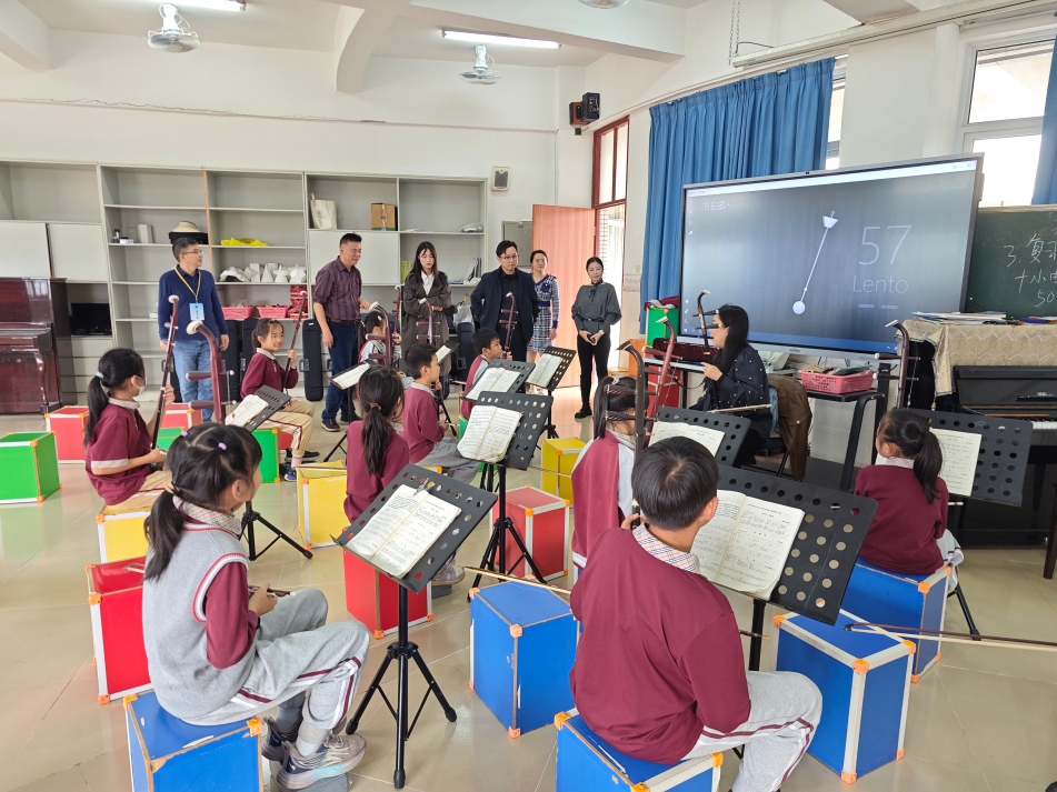 当天下午,调研组与校方管理团队及部分教师代表进行了深入的座谈交流,并实地参观了学校的民乐社团活动,观摩了二胡、舞蹈、国画、书法等美育项目的开展情况。